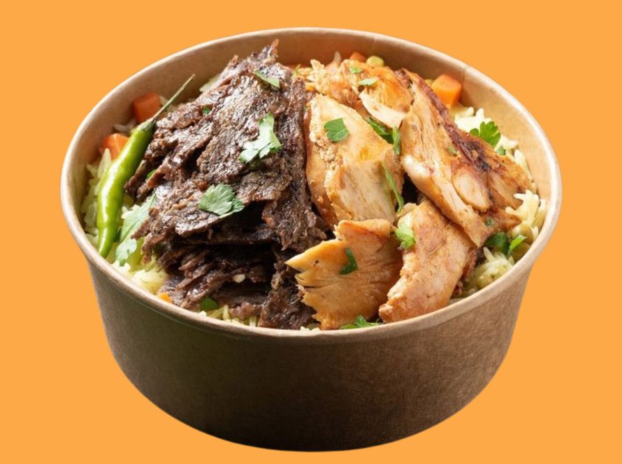 Choose tender chicken or juicy beef with fragrant rice or crispy potatoes. Includes a salad and a can of pop. Beef is extra $$!